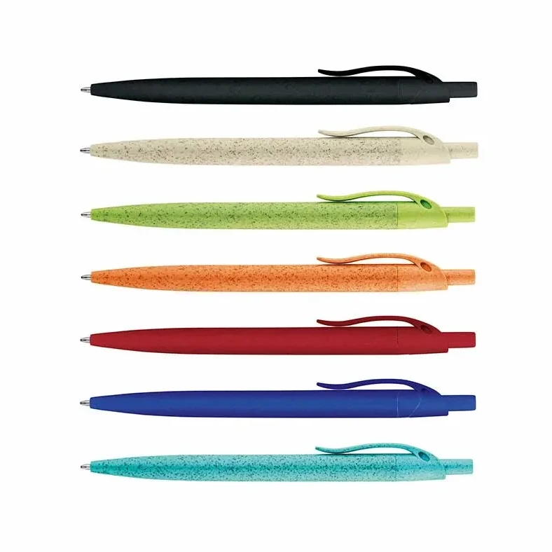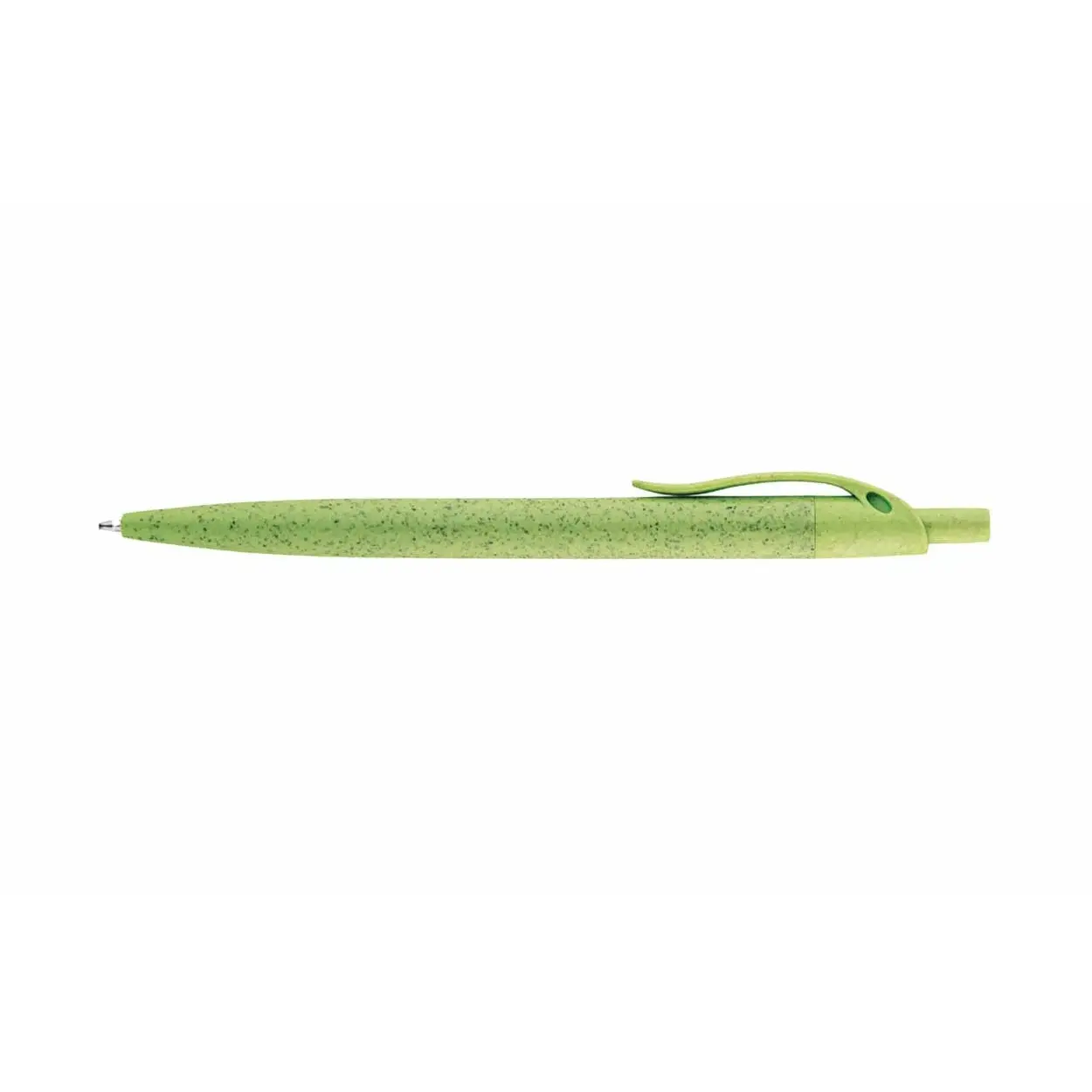 Bolígrafo ecológico fabricado en fibra de paja de trigo y ABS. Detalles granulados en el color . Tinta azul, punta redonda, grosor 1.0MM