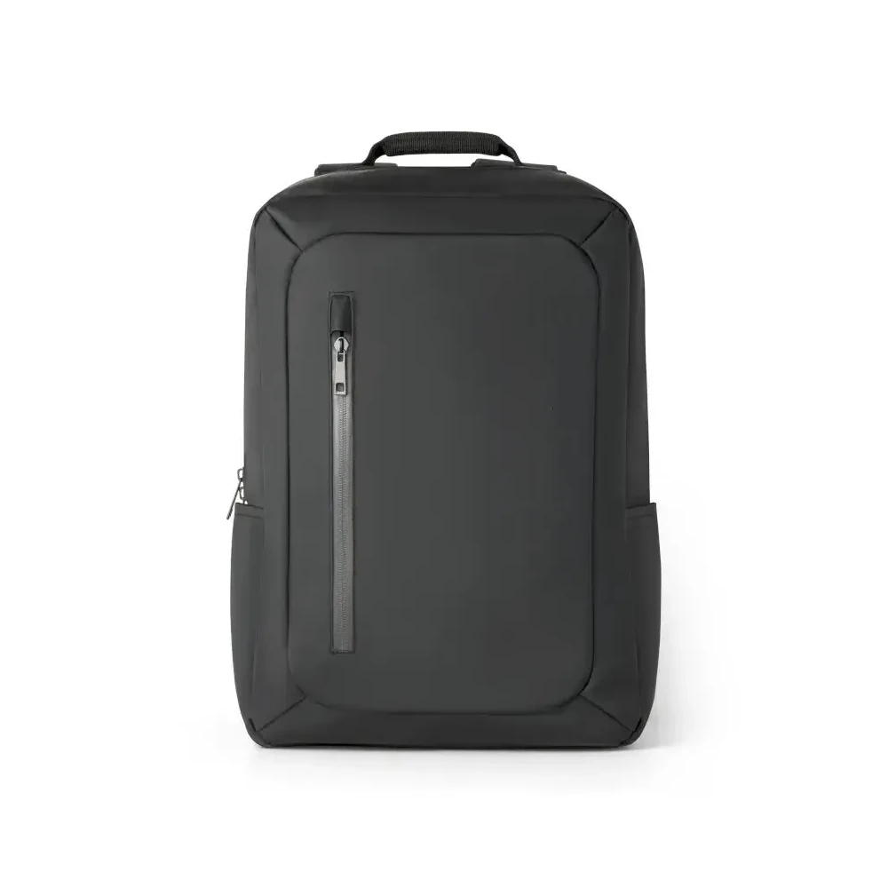 Mochila impermeable fabricada en poliéster 600D con cierres impermeables. Compartimiento principal acolchado para notebook de hasta 15,6″, con bolsillo lateral y bolsillo frontal. Espalda y tirantes acolchados. Capacidad: 11L.