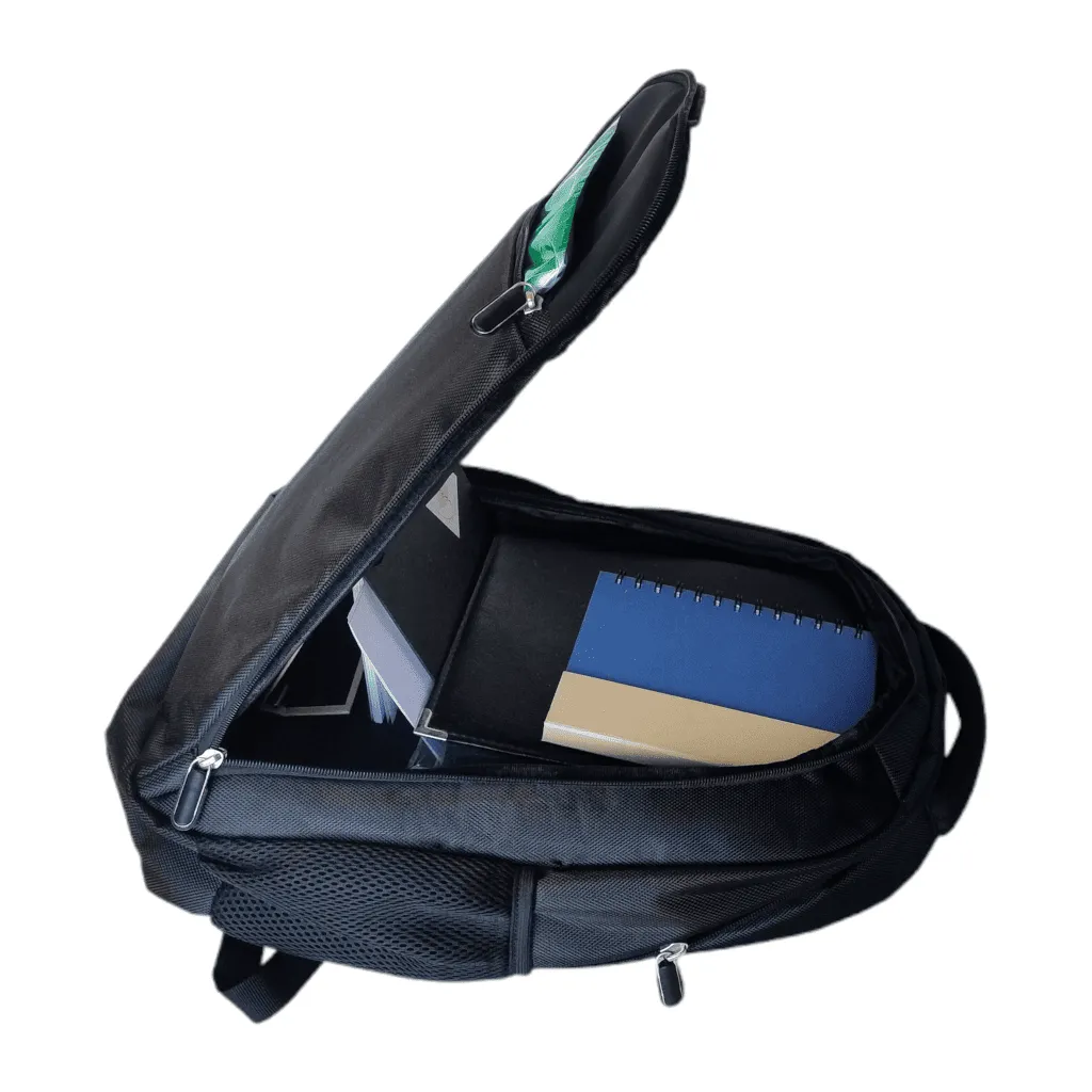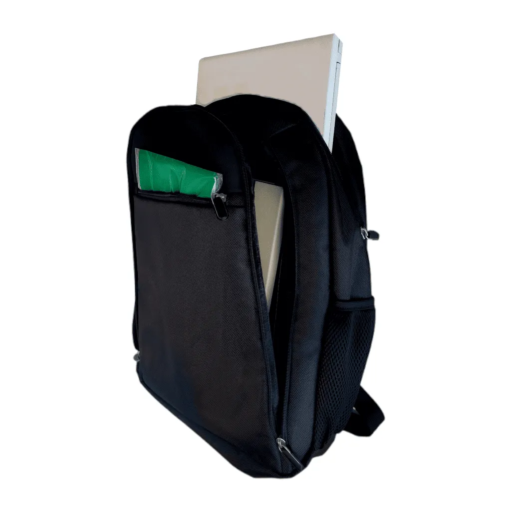 Mochila porta Notebook súper resistente e impermeable. Presenta un bolsillo en el frente con detalle en la parte superior en PU. Luego dos compartimientos, el primero con un cierre doble que permite abrir toda la parte frontal, el segundo y principal, también con cierre doble que contiene sobre el sector de la espalda el bolsillo porta notebook con sujetador con velcro. Interior forrado y acolchado. Posee dos bolsillos laterales en ripstop. Manija acolchada. Correas acolchadas ajustables. Soporte de espalda anatómico acolchado y reforzado.