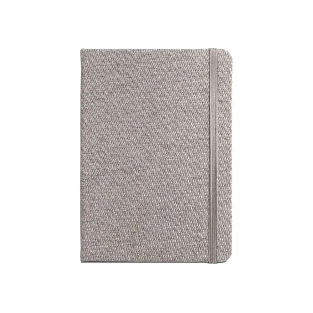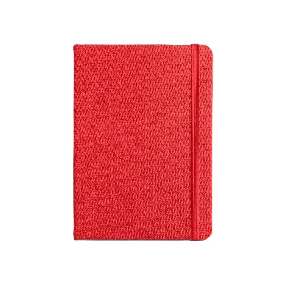 Cuaderno A5 con tapa dura hecha en material reciclado PET (50% rPET).96 hojas rayadas de papel procedente de la gestión forestal sustentable.Contiene marcapáginas, cierre elástico y bolsillo interior en la parte posterior de la tapa.