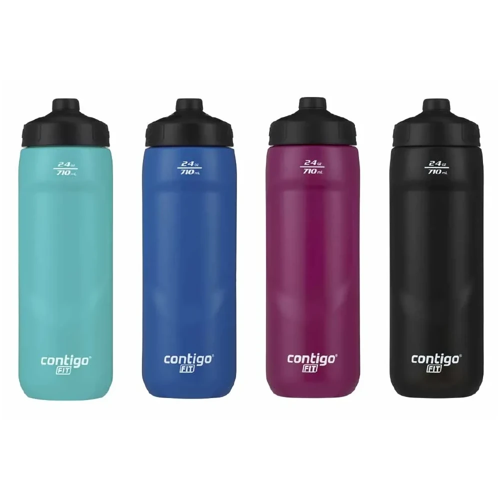 • Botella Contigo Fit Spill Proof sistema Squeeze, apriete la botella y sale automáticamente el líqudo • Tecnología de valvula unidireccional que previene derrames • Franja de visión clara para ver fácilmente el nivel del agua • Botella de fácil limpieza, para evitar manchas y olores • Libre de BPA • Capacidad de 710ml.