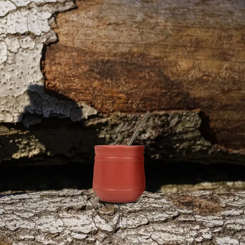 Mate plástico de poliestireno tipo barril. Incluye bombilla de acero inoxidable con disco plástico autolimpiante saca-yerba.