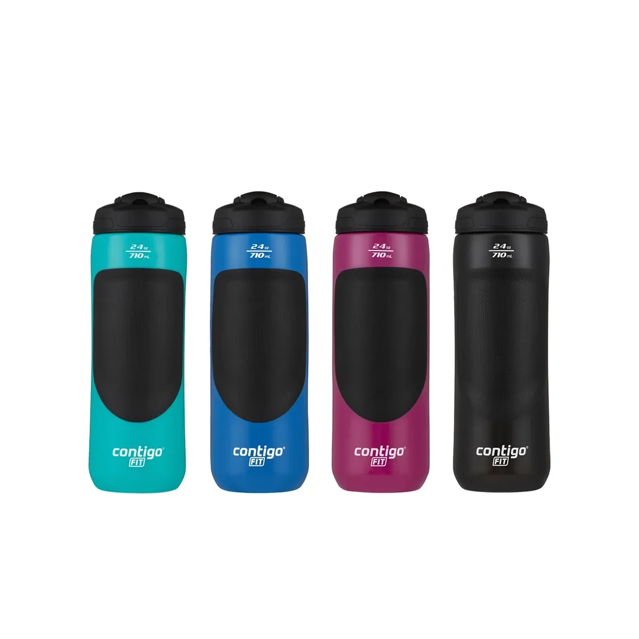 • Botella Contigo Fit AutoSpout con sistema Squeeze • Beber con una sola mano es fácil con la tapa AUTOSPOUT, botón de bloqueo para prevenir derrames • Tapa protectora de boquilla que protege de gérmenes y suciedad • Franja de visión clara para ver fácilmente el nivel del agua • Grip de goma para evitar resbalar mientras se hace deporte • Botella de fácil limpieza, para evitar manchas y olores • Libre de BPA • Capacidad de 710ml