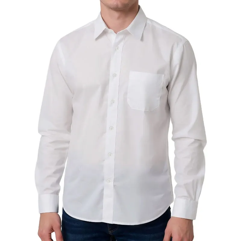 Camisa de manga larga de corte recto. Confeccionada en poplín (65% poliéster y 35% algodón), ideal para uso profesional.