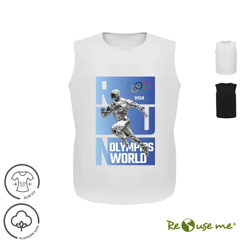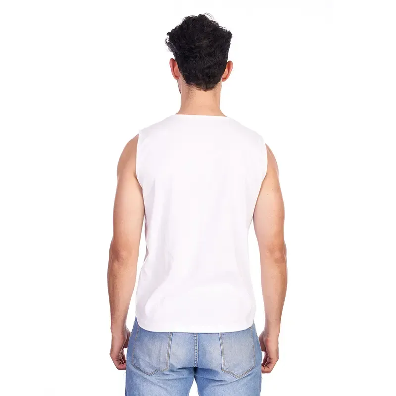 Remera musculosa de hombre en corte slim fit, con terminación de cuello y siza con collareta. Esta prenda está confeccionada 100% en algodón 24/1 peinado, un recurso ecológico renovable y sostenible. Él mide 1.88m y está usando talle L. Recomendaciones de uso para cuidar tu prenda: Lavar a máquina a 30°. No Blanquear. No secar en máquina. Planchar suavemente, evitando el área estampada. ReUseMe.