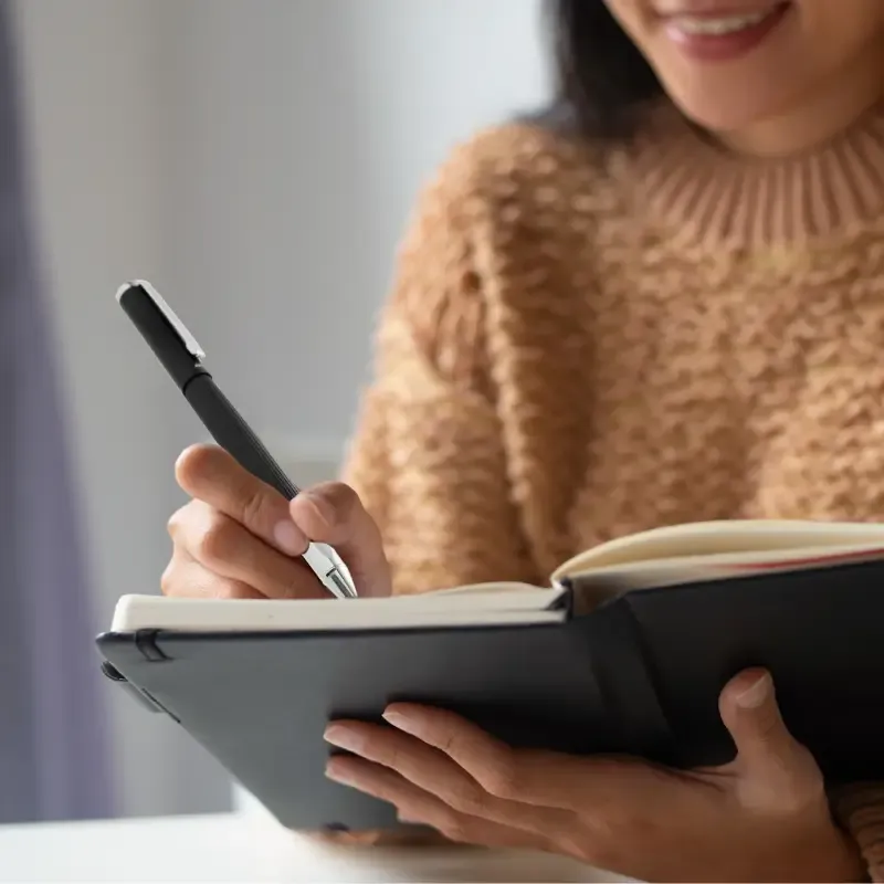 Bolígrafo roller de cuerpo metálico en acero con detalles en negro. Cuenta con tinta azul. Medidas: 13,8 x 1,3 cm.