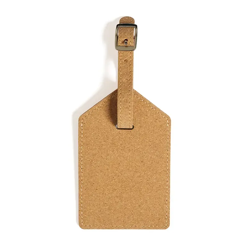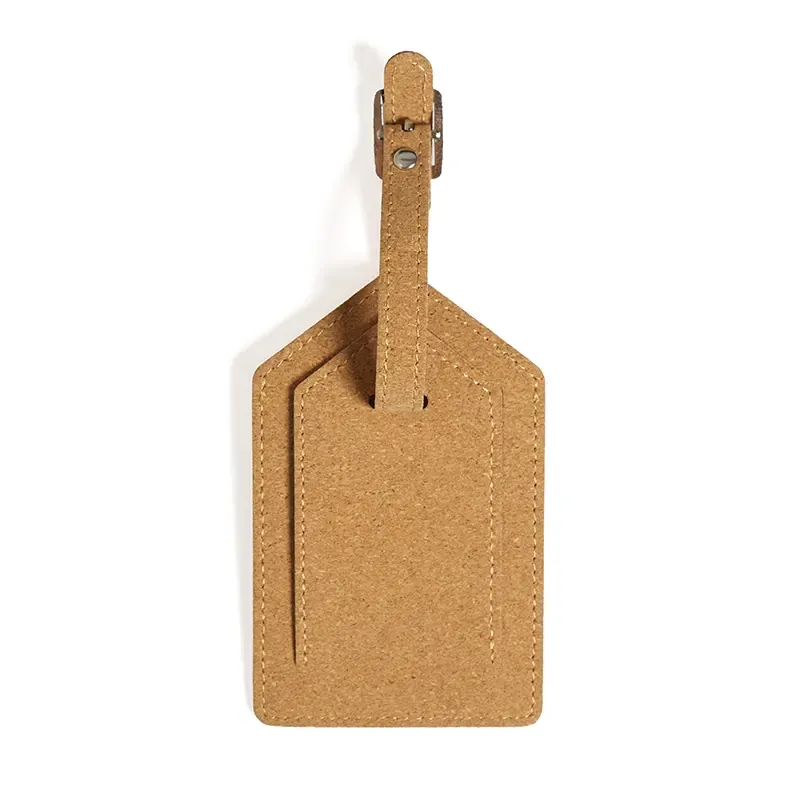 Etiqueta de equipaje fabricada en corcho natural con gancho de hierro. Hecha con corcho de 4 mm de grosor, ofrece un diseño ligero, resistente y de textura natural. Cuenta con correa ajustable y gancho metálico que aseguran un anclaje firme a maletas y bolsos. Es ideal para viajeros que buscan un accesorio funcional y sostenible para identificar fácilmente su equipaje.