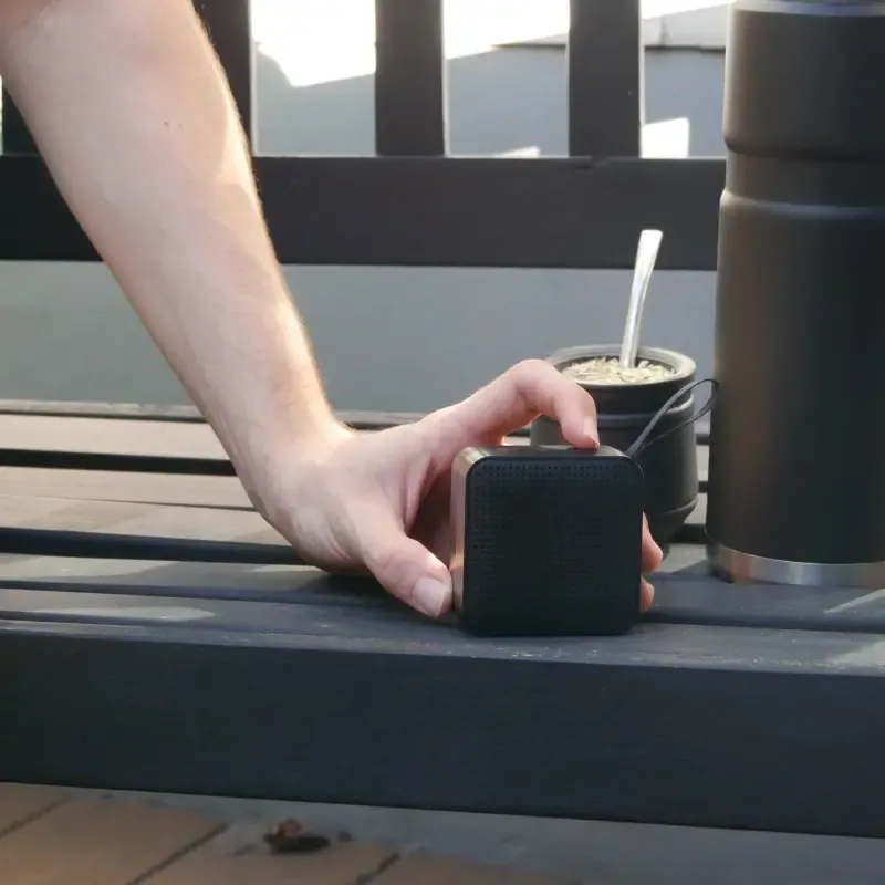 Parlante portátil con tecnología Bluetooth, micrófono manos libres y modo radio FM, realizado en ABS. Incluye ranura para lectura de tarjetas de memoria micro SD. | Batería de 500mAh | Potencia del parlante: 3w | Frecuencia:60Hz-16KHz | Conexión 5V/300mA | Peso: 133g | Medidas70 x 70 x 37mm.